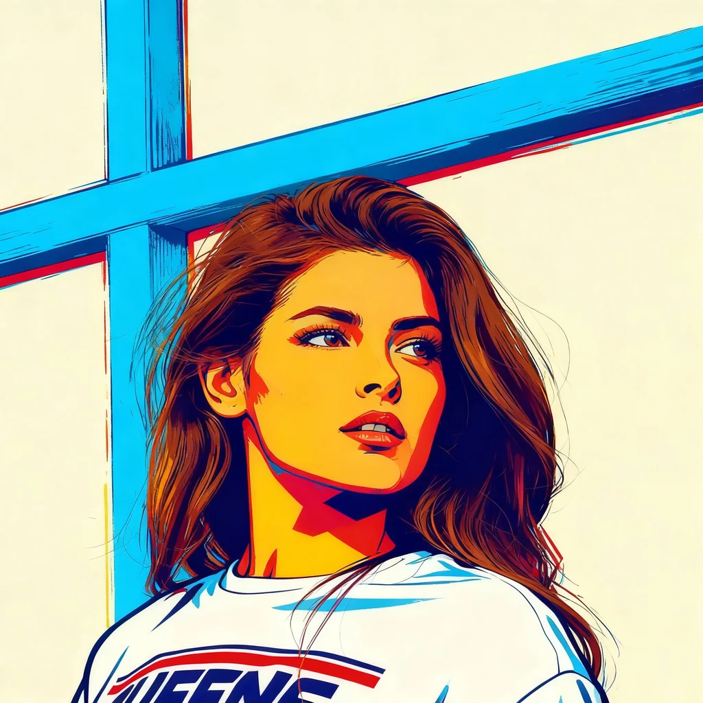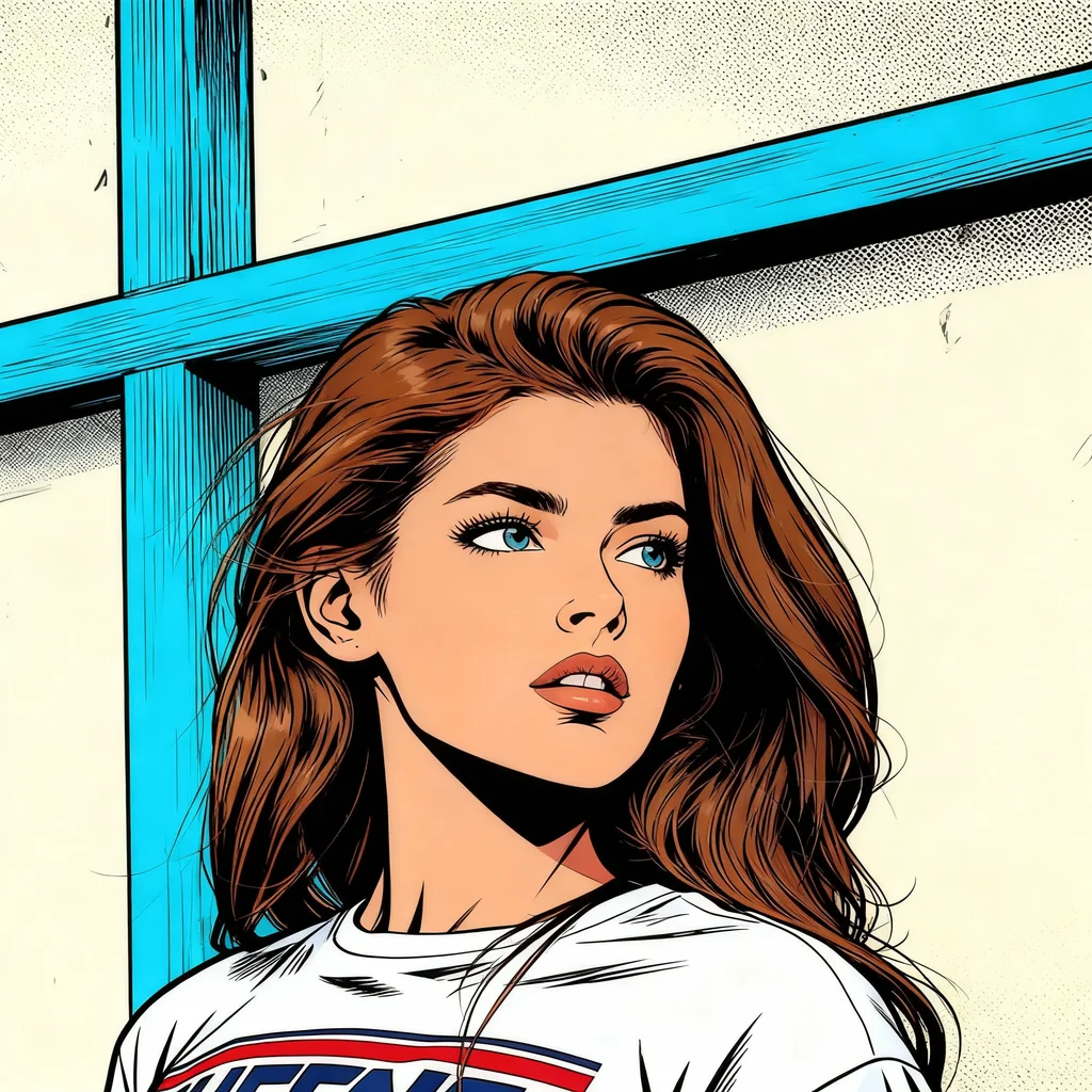 Bold colors, halftone dots and graphic contrast for retro pop-art and comic book effects.